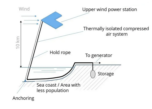 The energy of the high-altitude wind power station, which is placed in 10 000 m, is changed into hot air pressure