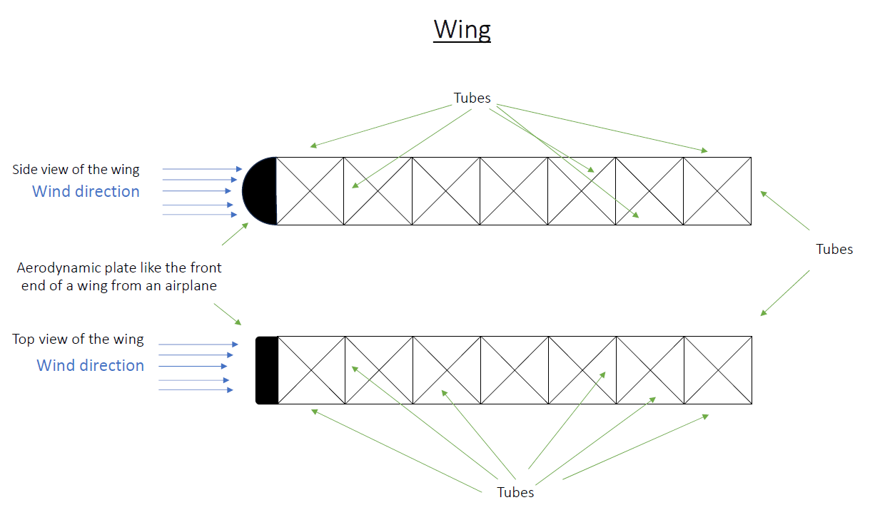 Only the front part of the wing requires the shape of an airplane wing, because no uplift needs to be generated by the wing.